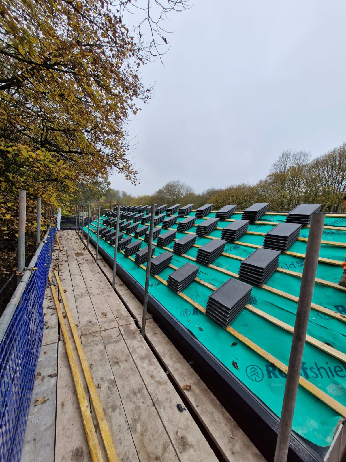 Despite the obstacles, we completed the full roofing system installation without delay, delivering a robust and maintenance-friendly finish. Our team used premade trusses to create a strong structural framework, UPVC fascias, soffits, and rainwater goods to achieve a clean, low-maintenance edge, and Roofshield breathable felt with treated battens for dependable weatherproofing. The tiled roof was finished with a secure dry verge and dry ridge system, ensuring long-term durability and a neat, professional appearance. Although the remote access required careful coordination of every delivery and material movement, the site team kept operations running smoothly from start to finish.